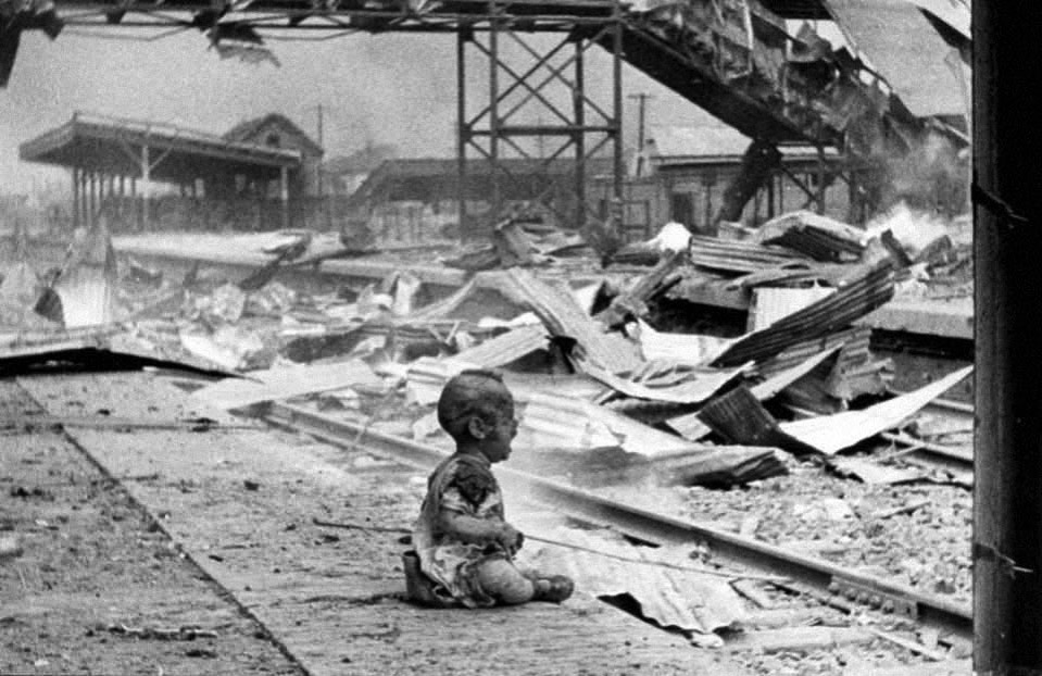 Gare de Shanghai-Sud. Photo H. S. Wong, via Wikipedia. 28 août 1937.